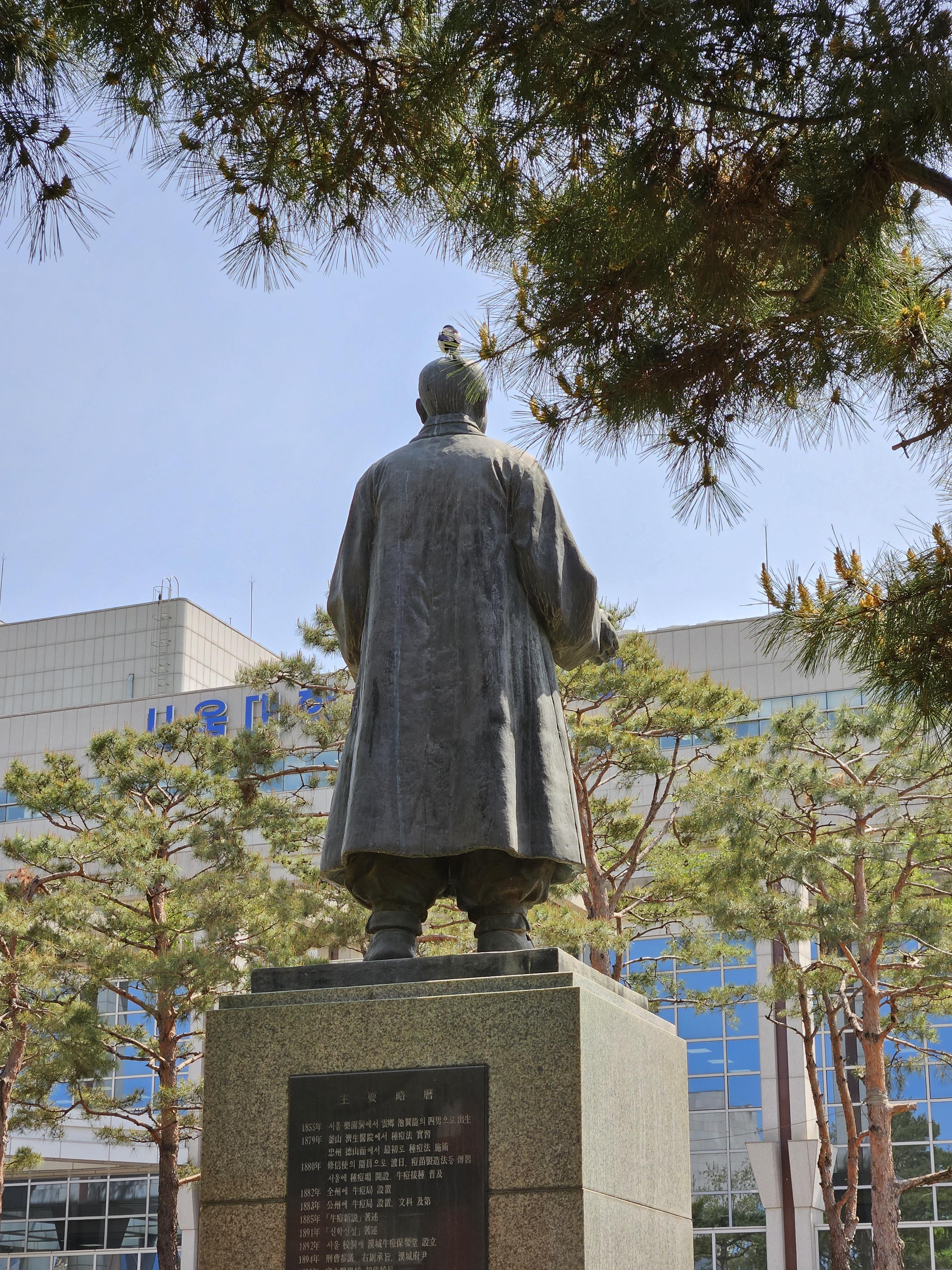 동상 머리 위에 까치가 앉아 있어서 찍었답니다. 누구 동상인지는 모르겠습니다. 서울대학병원 세우신 분인가???
