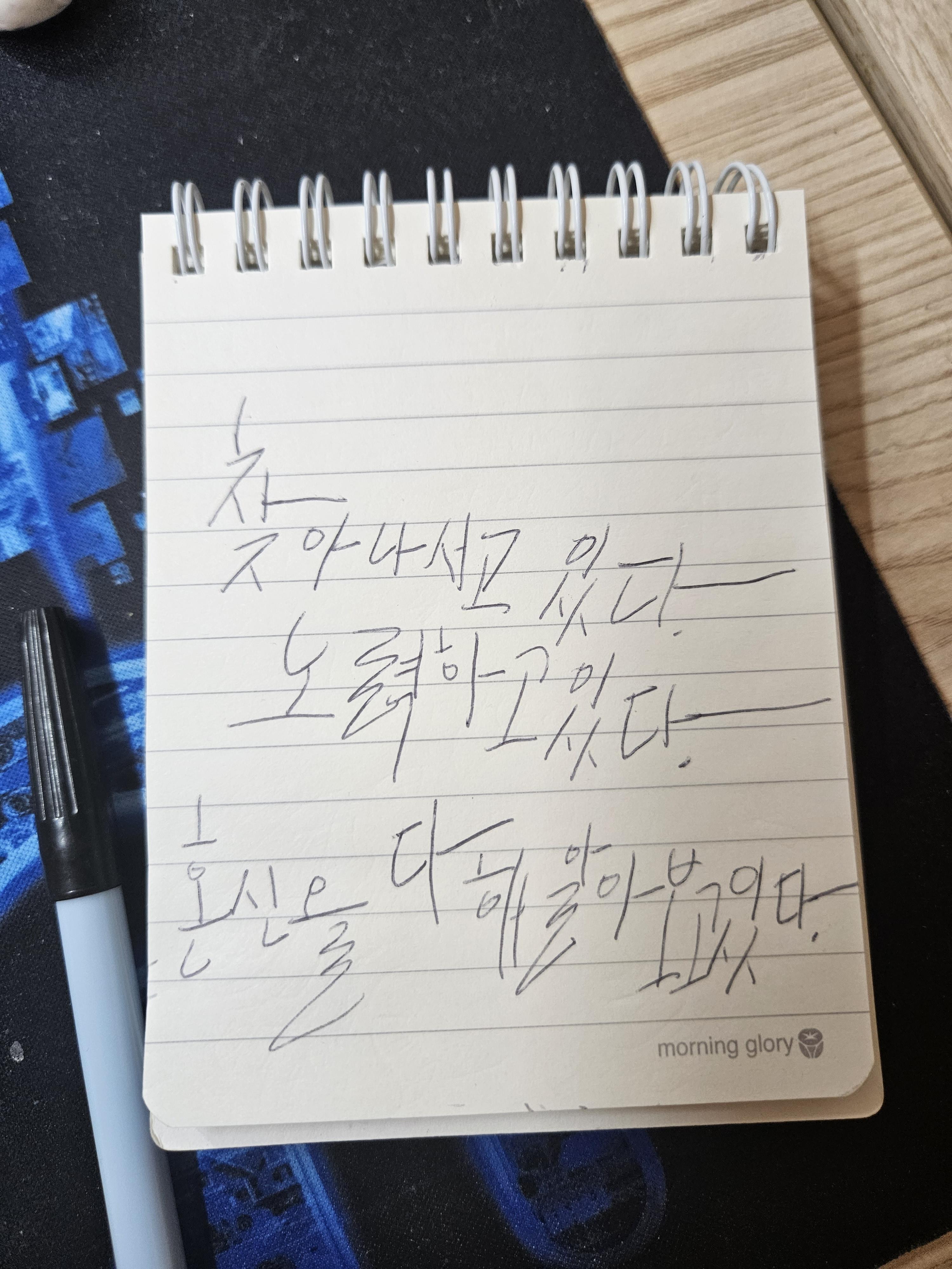 당시에 무슨 생각을 하며 제 수첩에 이런 글을 썼는지 진심 궁금해졌습니다.