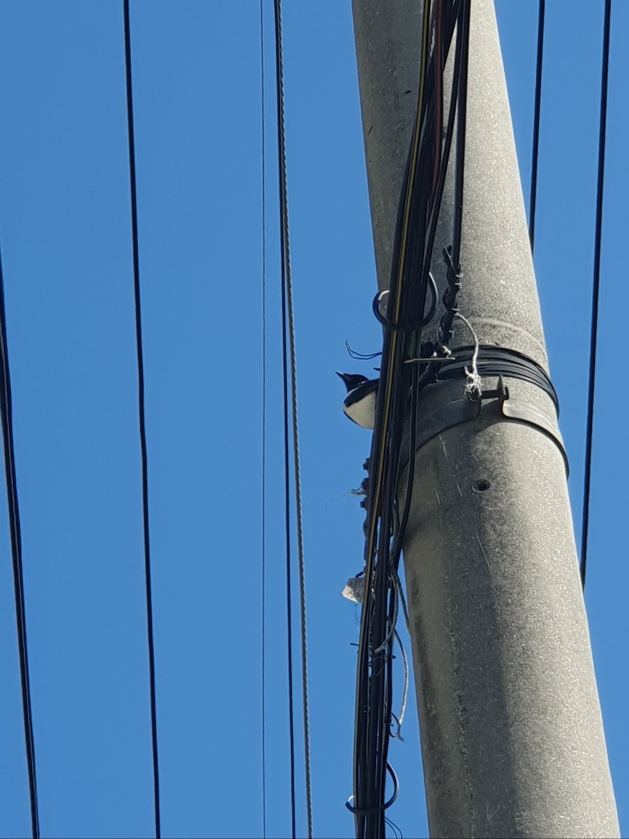 잘 보시면, 전선 위에 까치가 있습니다. ^^ 이걸 어떻게 본 건지......