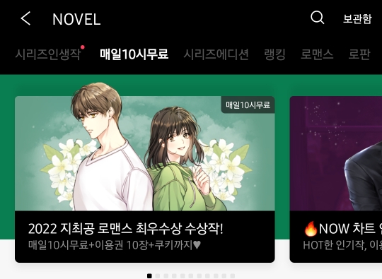 시리즈를 보시는 방법은 <시리즈>라는 앱을 까셔도 되고, 위에 보시면 N 웹소설, 그리고 얖에 흐린 글씨로 '시리즈', '웹툰'이라고 써 있는 거 보이시나요?