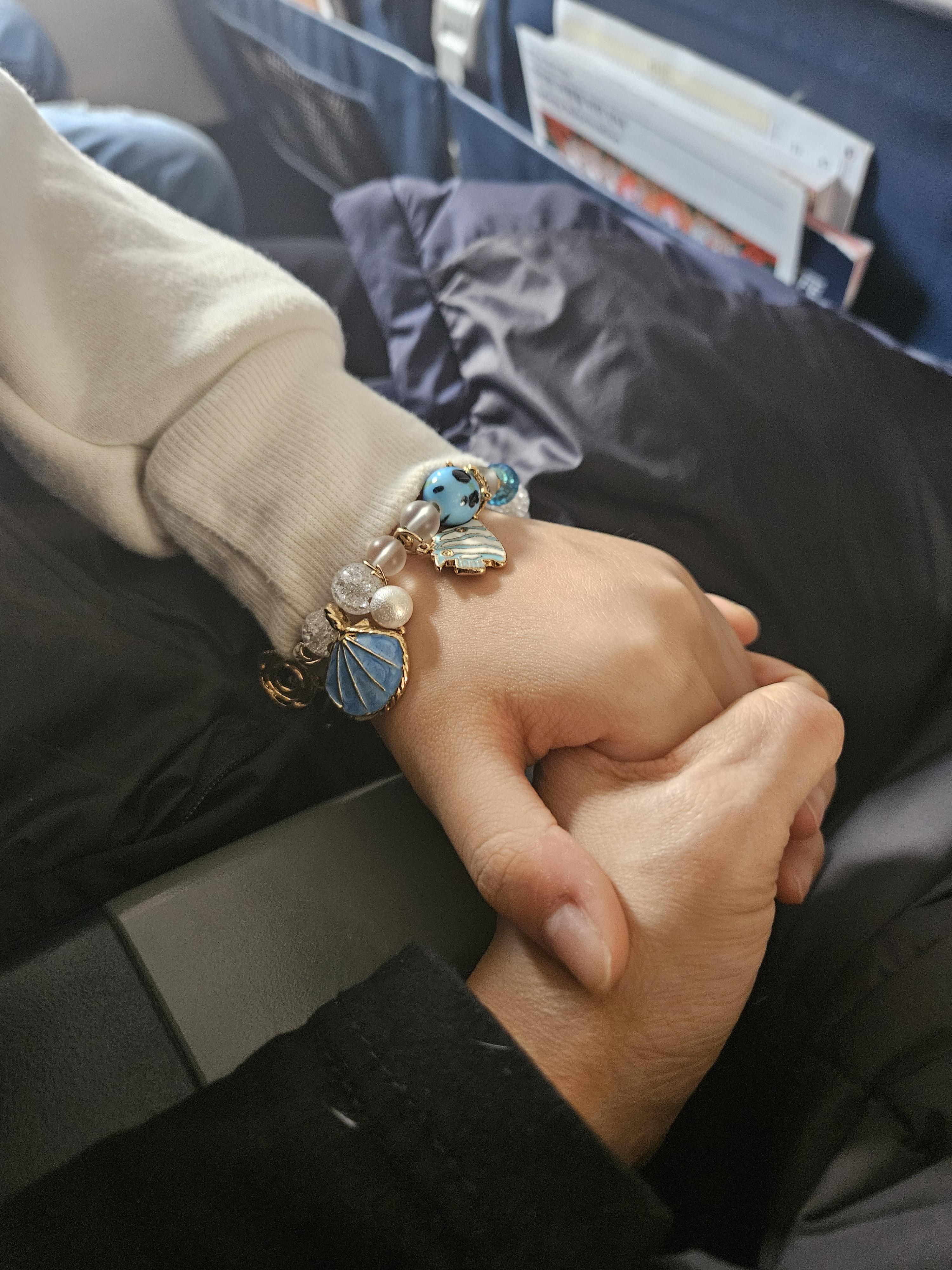 팔찌를 찍어야 한다고 해서 딸과 손잡고 찍은 사진입니다.
